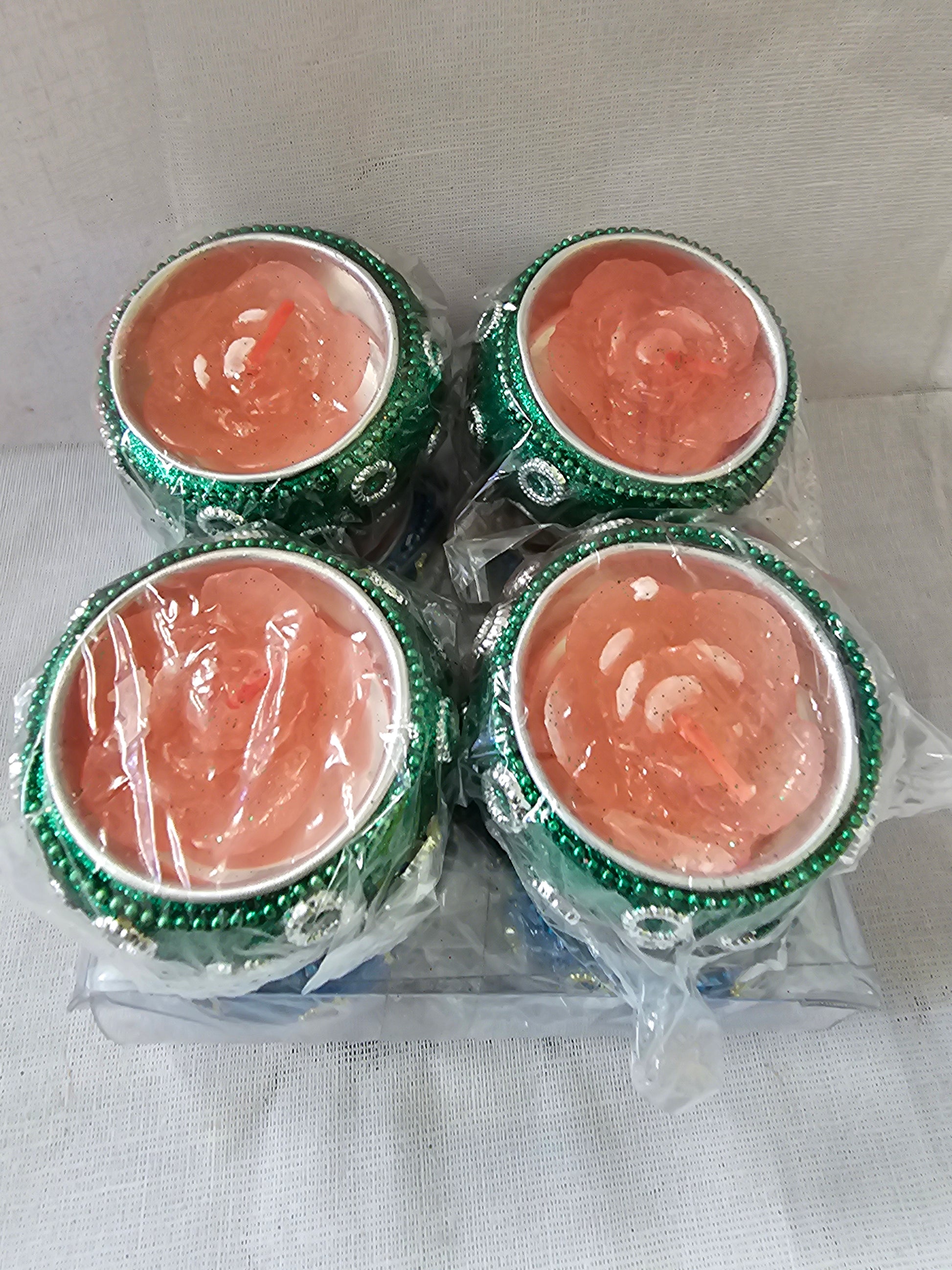 Festive Glittered Diya Flower Shaped Candel 4pc 1.4CMx5CM